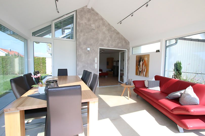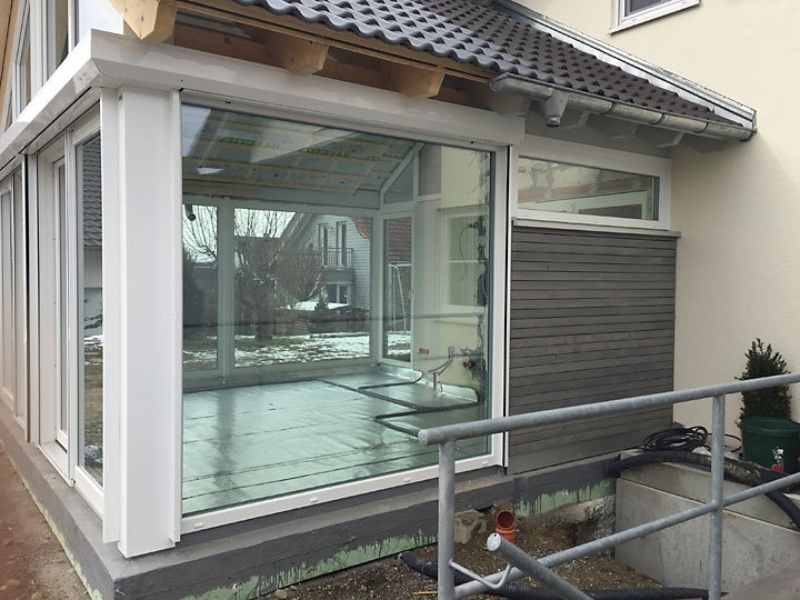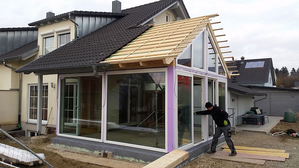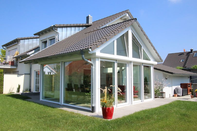 Ausführung: Aluminium-HolzBesonderheiten: Erweiterung mit Satteldach, Wintergarten mit ZiegeldachBaujahr: 2015