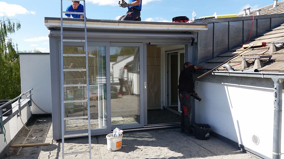 Glasdach wurde durch Glaskubus mit Flachdach ersetzt