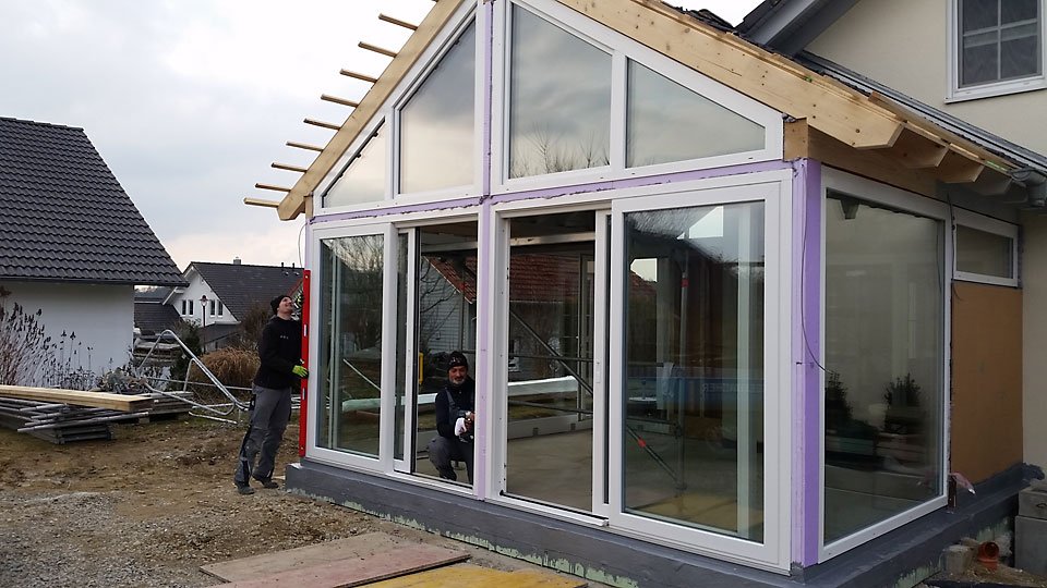 Besonderheiten: Erweiterung mit Satteldach, Wintergarten mit Ziegeldach
