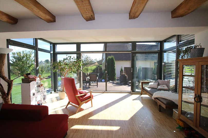 Ausführung: Aluminium-HolzBesonderheiten: Mit Flachdach und gleichzeitiger EingangsüberdachungBaujahr: 2014