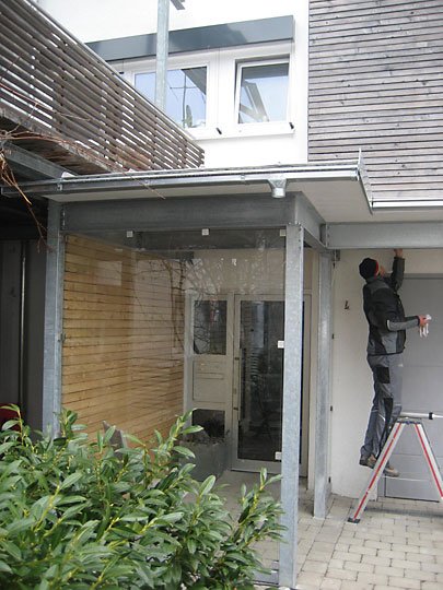 Ausführung: Stahl/HolzBesonderheiten: Dach über Türe, Tor und Zwischenraum. Funktional und schönBaujahr: 2011