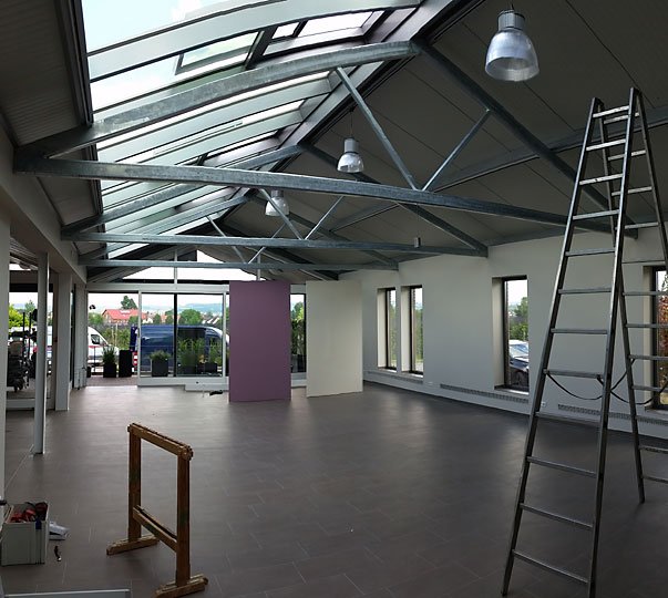 Ausführung: AluminiumBesonderheiten: Umbau Verkaufraum, Neugestaltung Verkauf, Eingang und Aussenanlagen. Planung HeggelbacherBaujahr: 2014