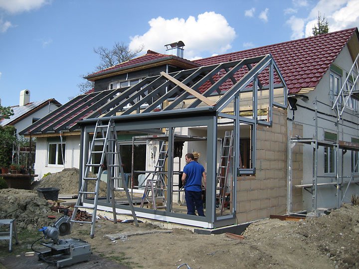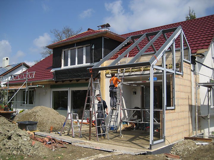 Ausführung: Aluminium-KunststoffkonstruktionBesonderheiten: Wohnwintergarten mit TerrassendachBaujahr: 2010