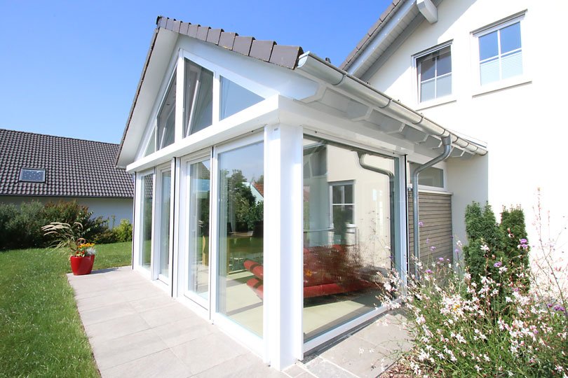 Besonderheiten: Erweiterung mit Satteldach, Wintergarten mit Ziegeldach