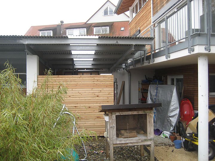 Ausführung: Stahl/HolzBesonderheiten: Dach über Türe, Tor und Zwischenraum. Funktional und schönBaujahr: 2011