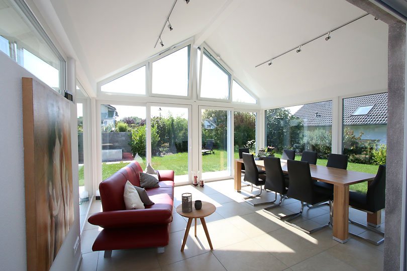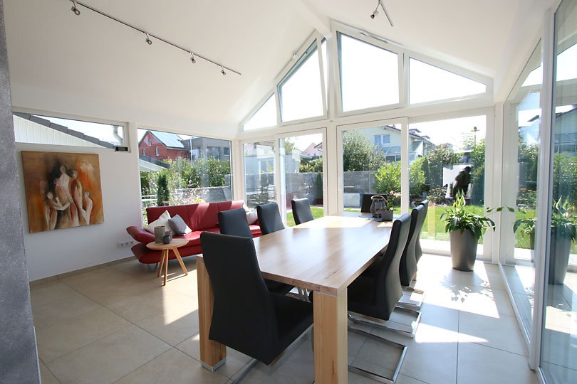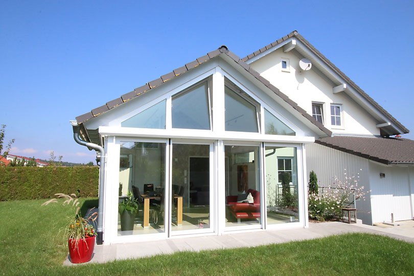 Ausführung: Aluminium-HolzBesonderheiten: Erweiterung mit Satteldach, Wintergarten mit ZiegeldachBaujahr: 2015